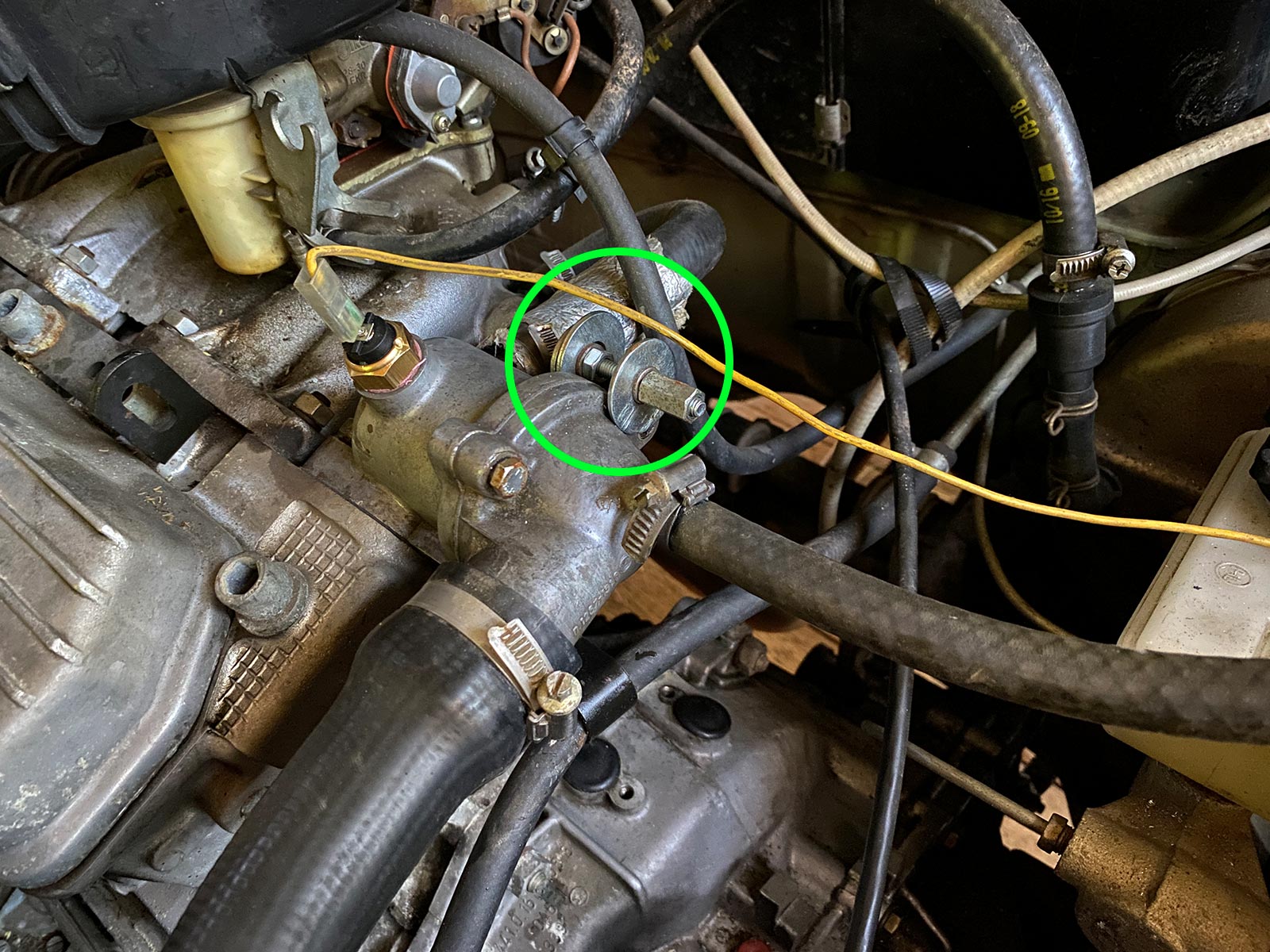 Koncem června se zase po třech letech pouštím do výměny chladicí kapaliny. Používám originální kapalinu G11 ředěnou 1:1 s destilkou. Vzhledem k pravidelným výměnám a kvalitní kapalině nedělám proplachy. Tuto rutinní údržbu jsem se letos rozhodl spojit s výměnou termostatu, kterého poslední dva roky podezírám z podchlazování motoru. Na sytič totiž motor běží zbytečně dlouho a v chladných dnech málo vytápí kabinu.
