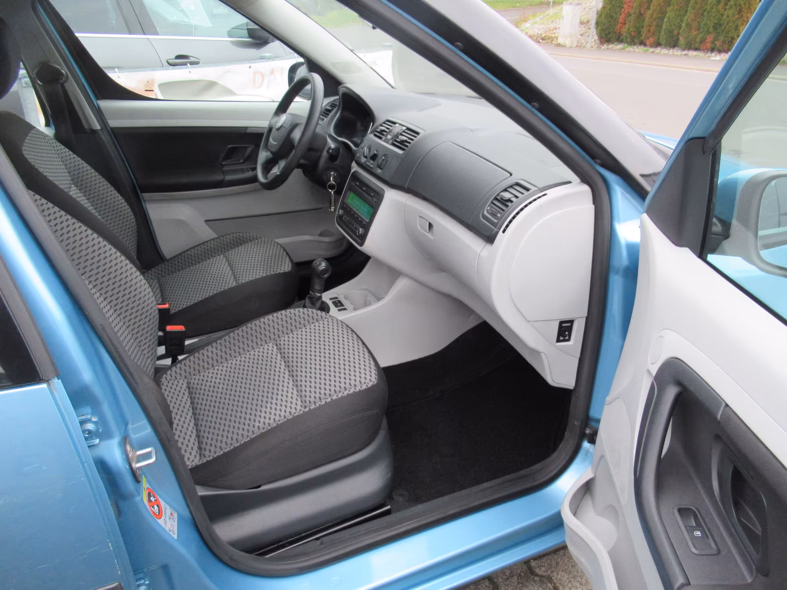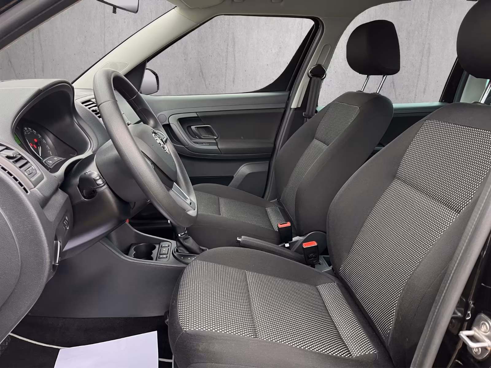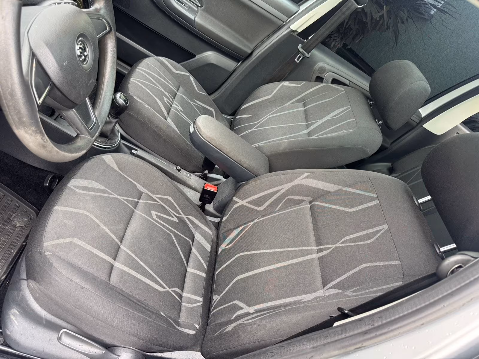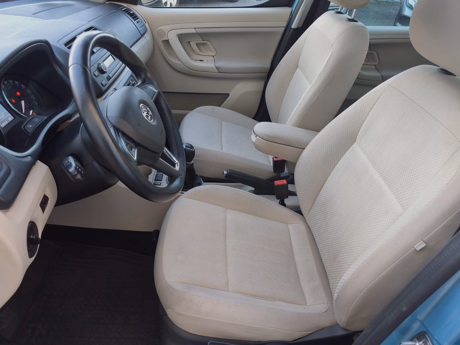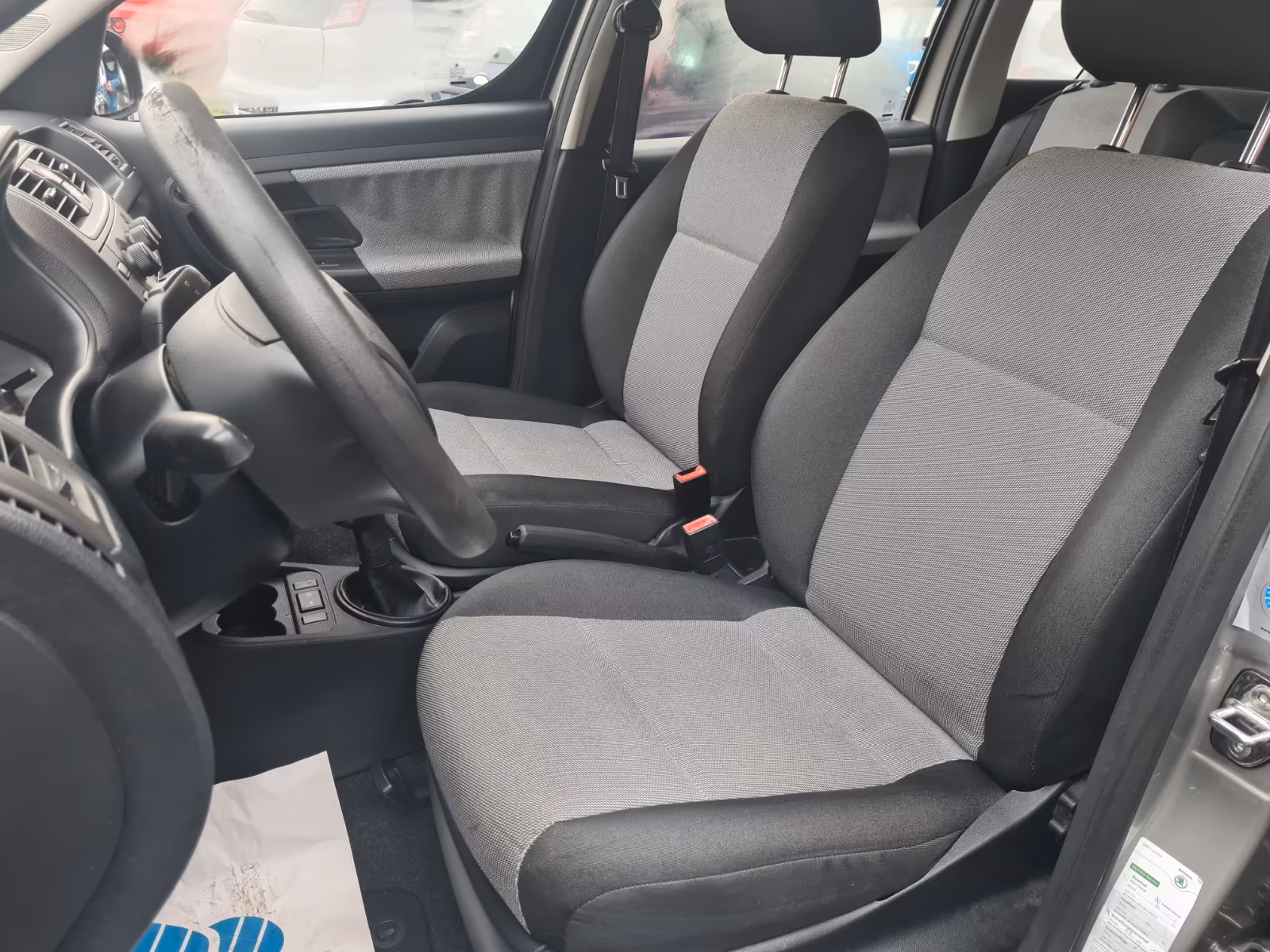 Vzor potahů je totožný se vzorem z jedničkové Fabie po faceliftu v úrovni Classic (tam se jmenoval Fresh). Byl v nabídce s plasty Onyx/Onyx nebo Onyx/Stříbrnošedá, ale do pracovního auta si světlou variantu asi nikdo nevybral.