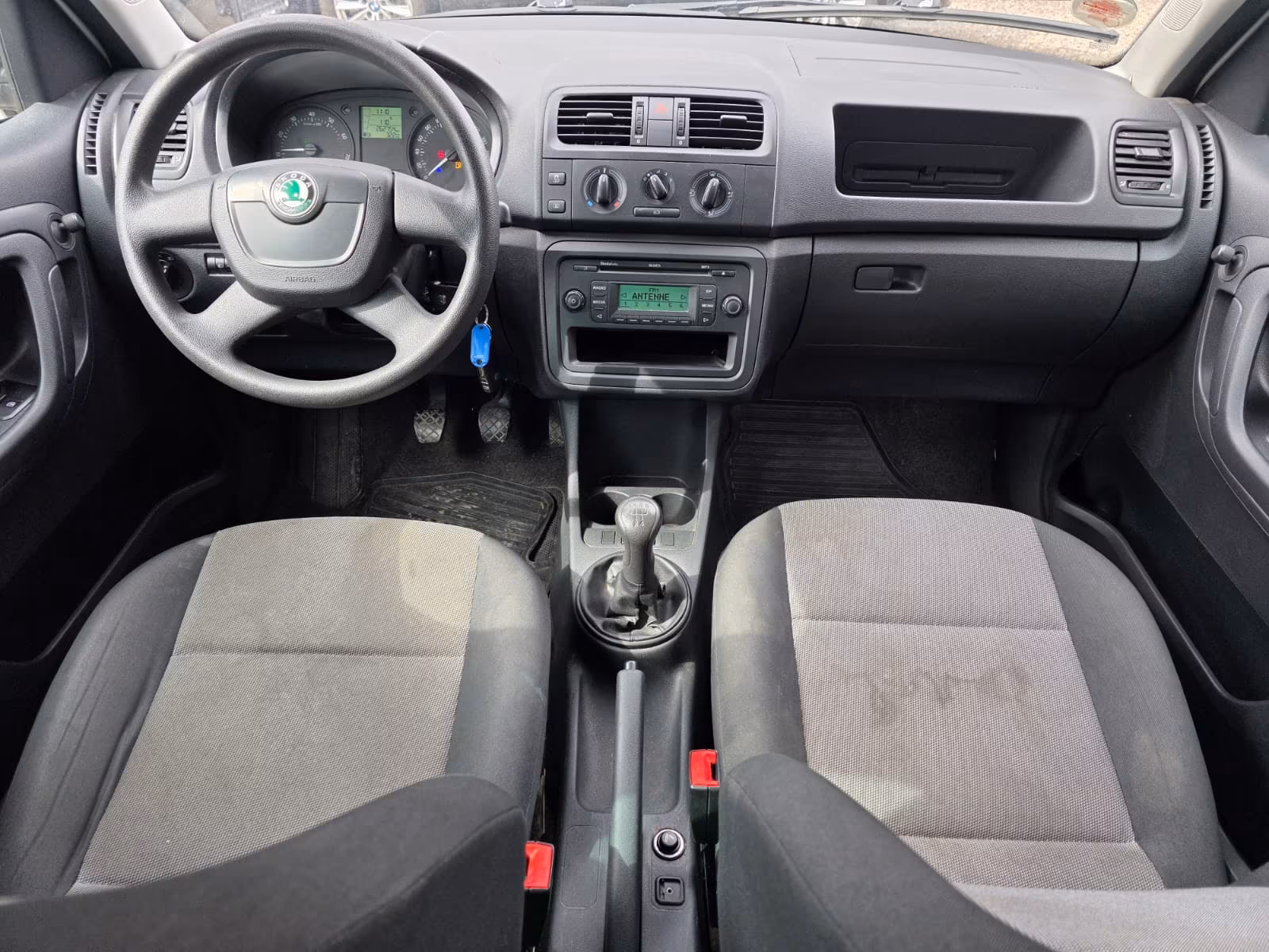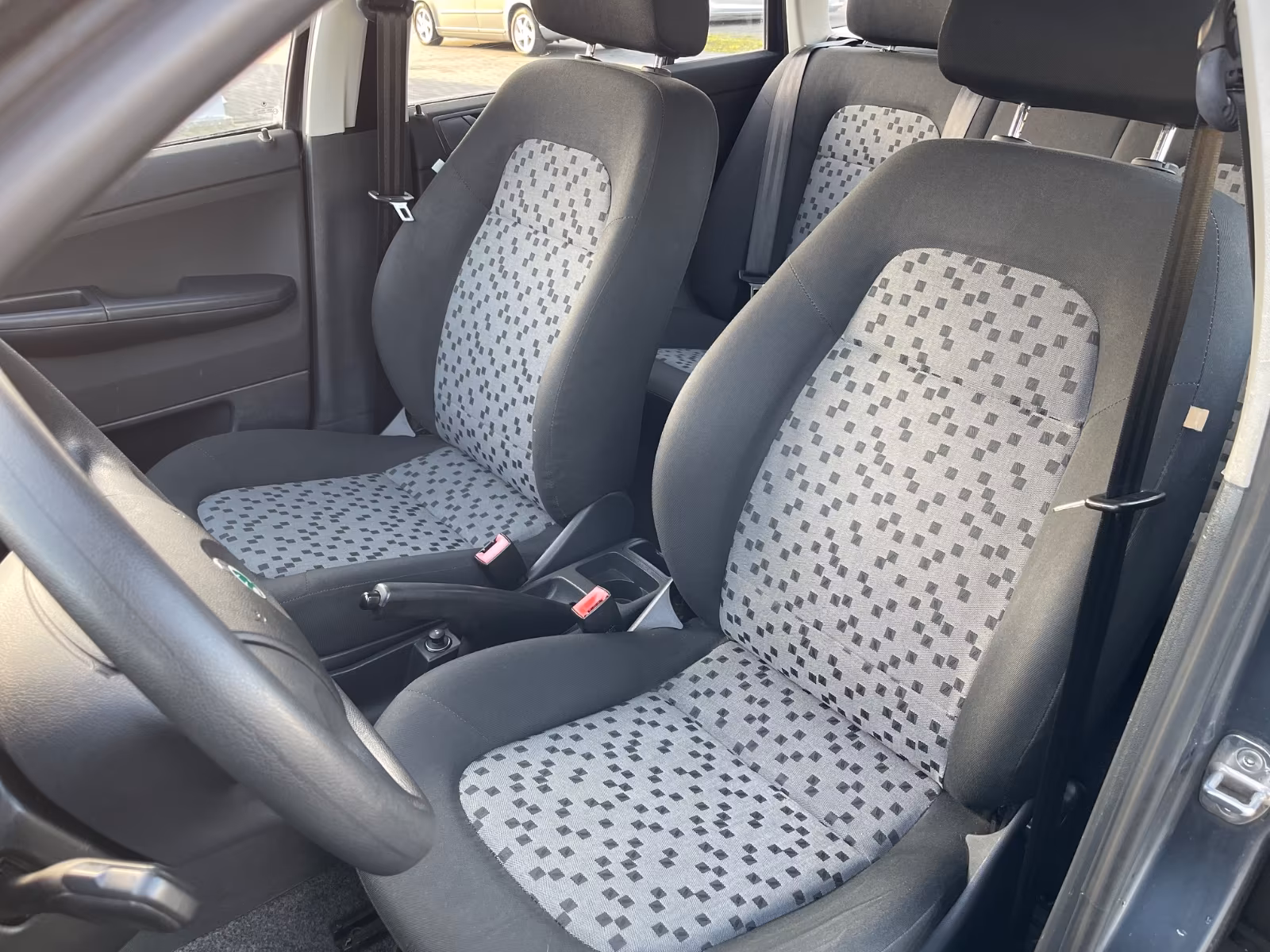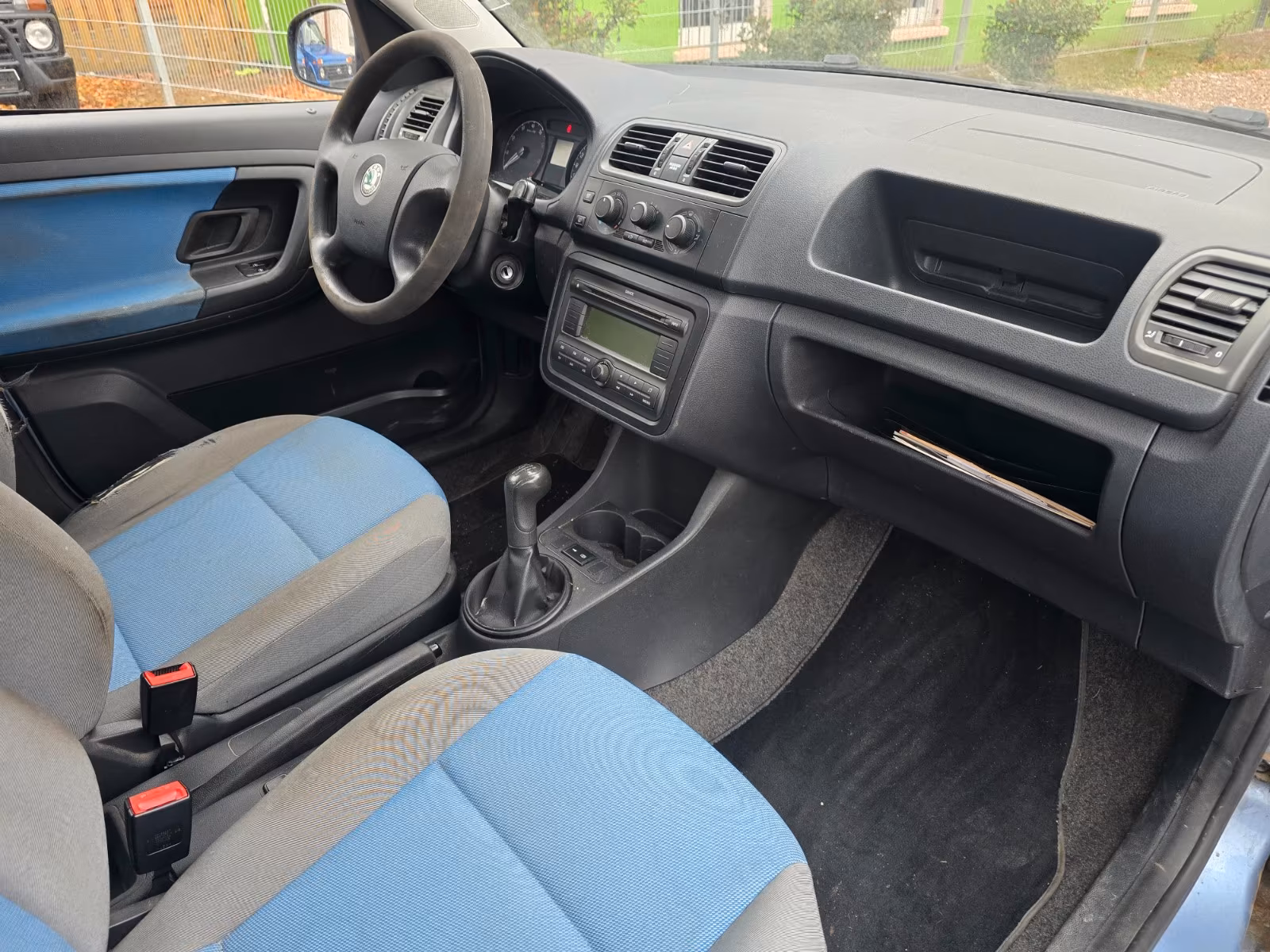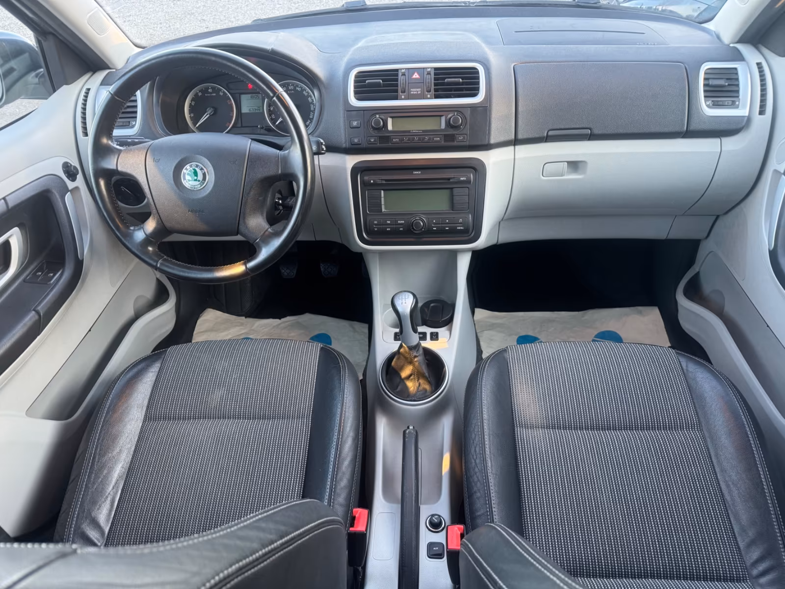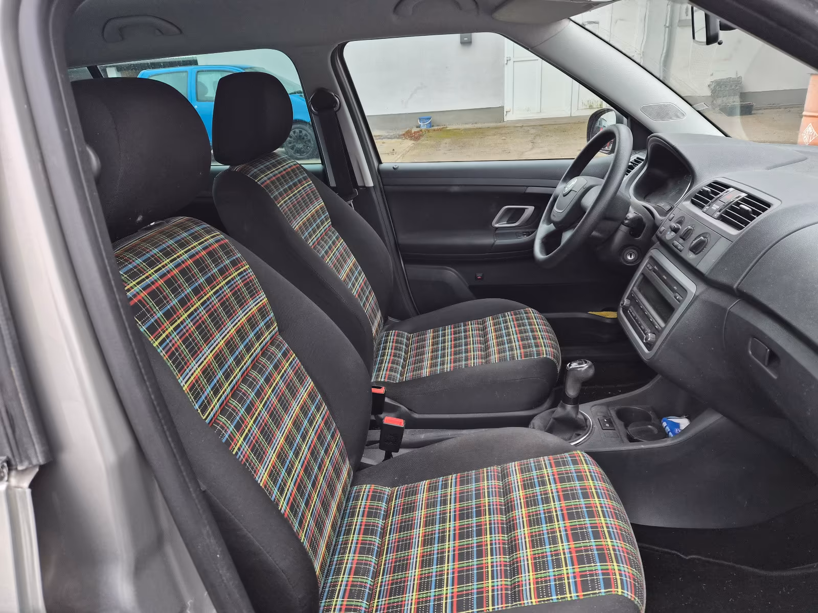 Vzor potahů je totožný se vzorem z jedničkové Fabie po faceliftu v úrovni Classic (tam se jmenoval Fresh). Byl v nabídce s plasty Onyx/Onyx nebo Onyx/Stříbrnošedá, ale do pracovního auta si světlou variantu asi nikdo nevybral.