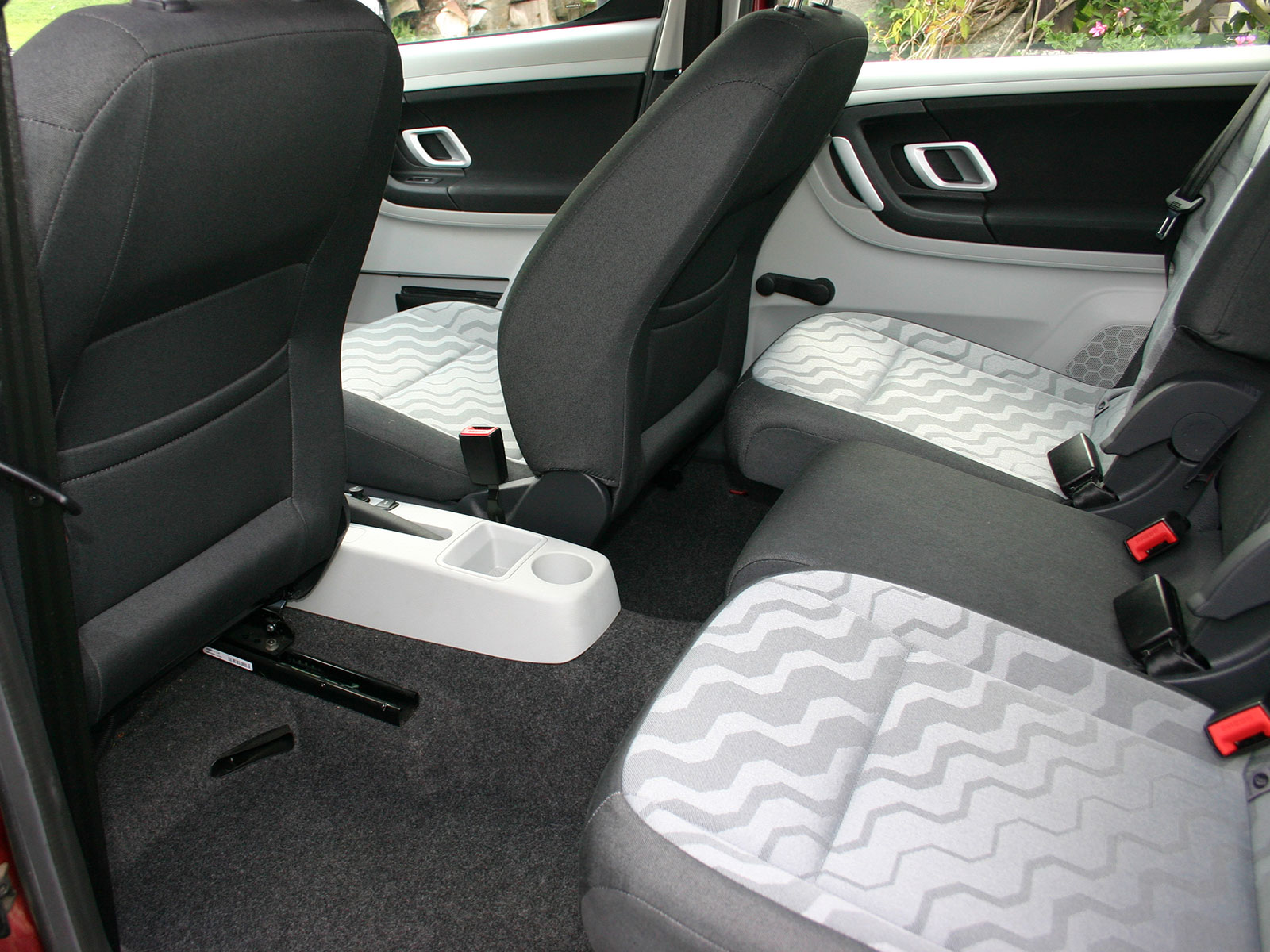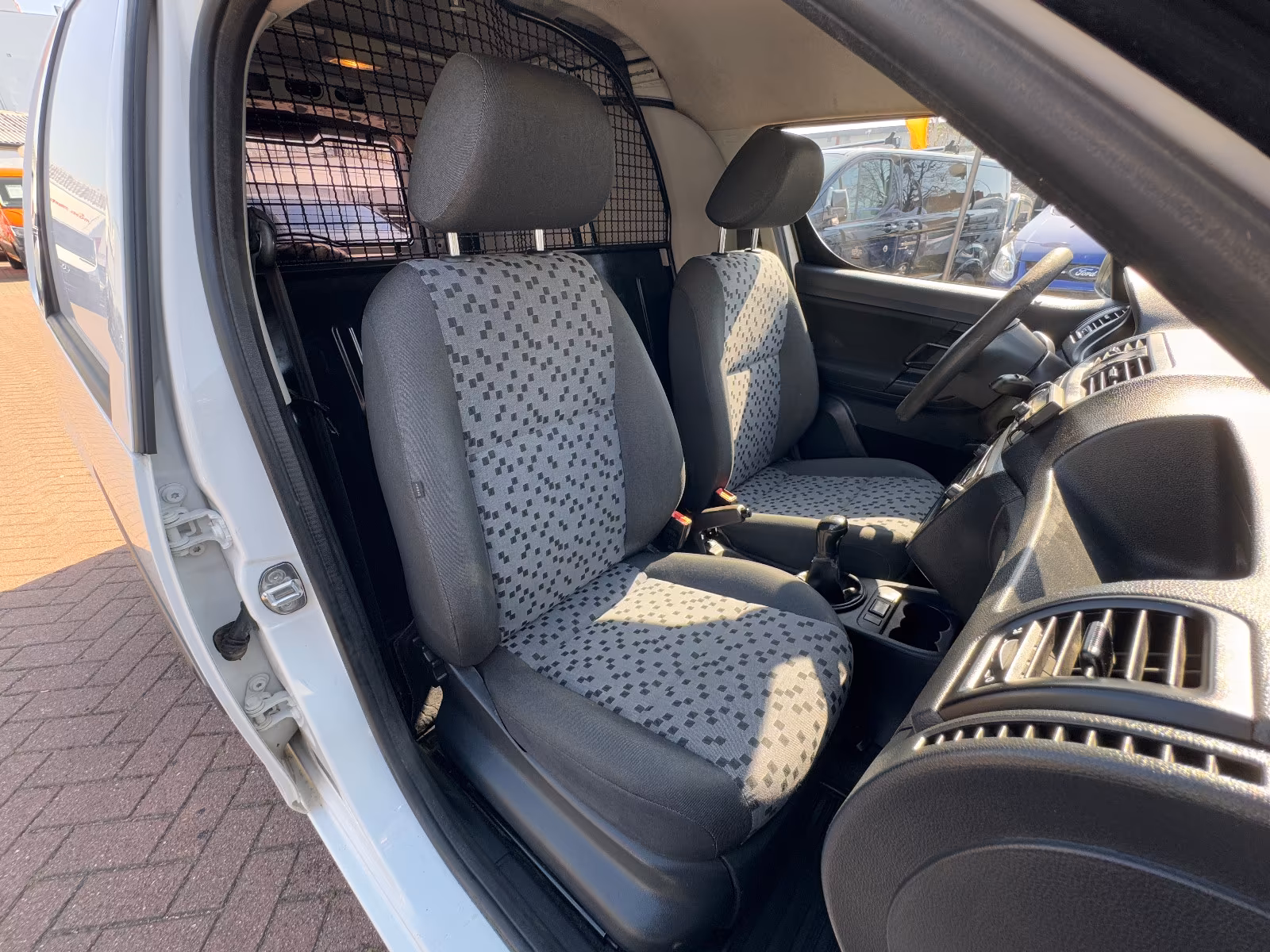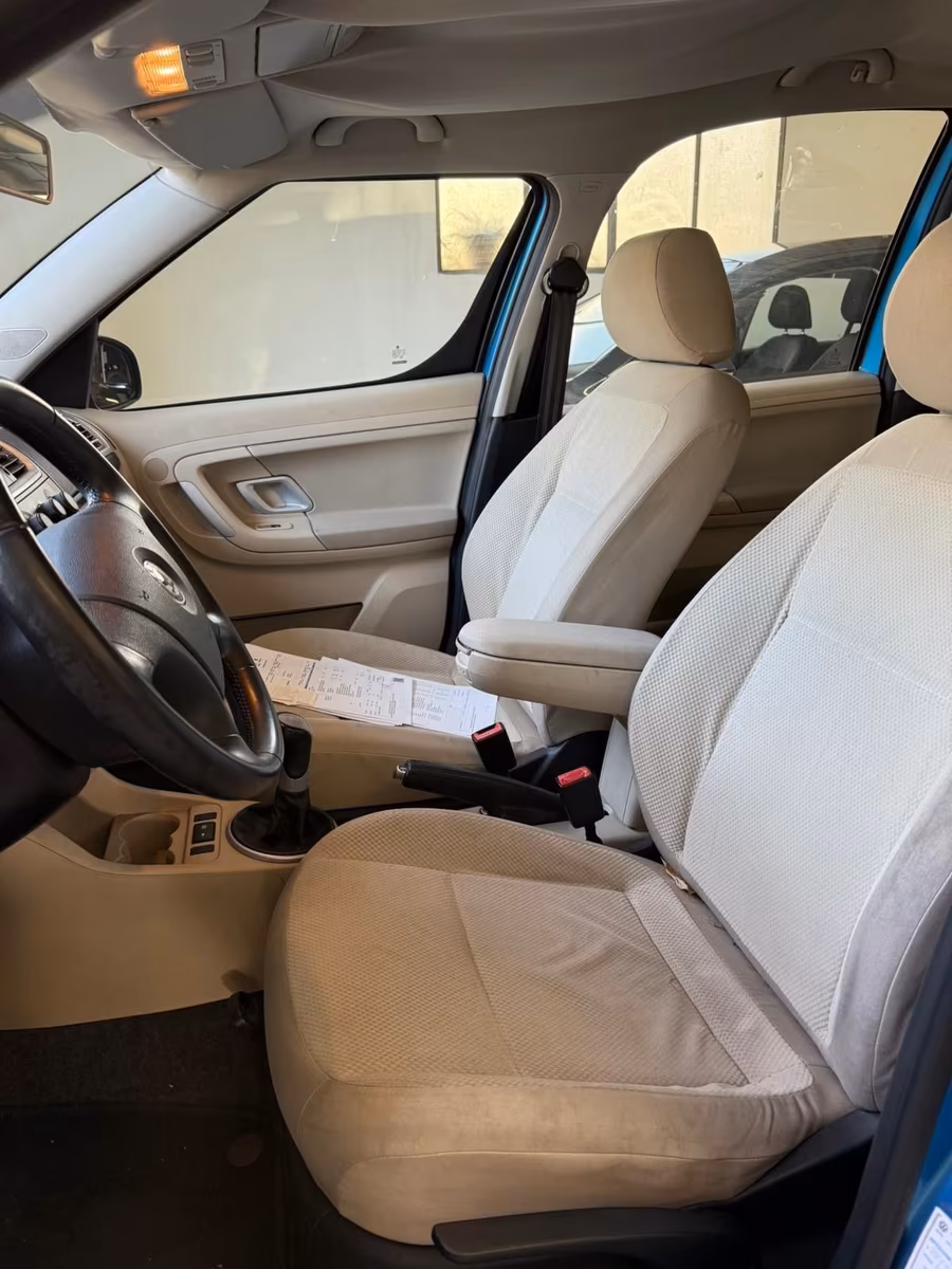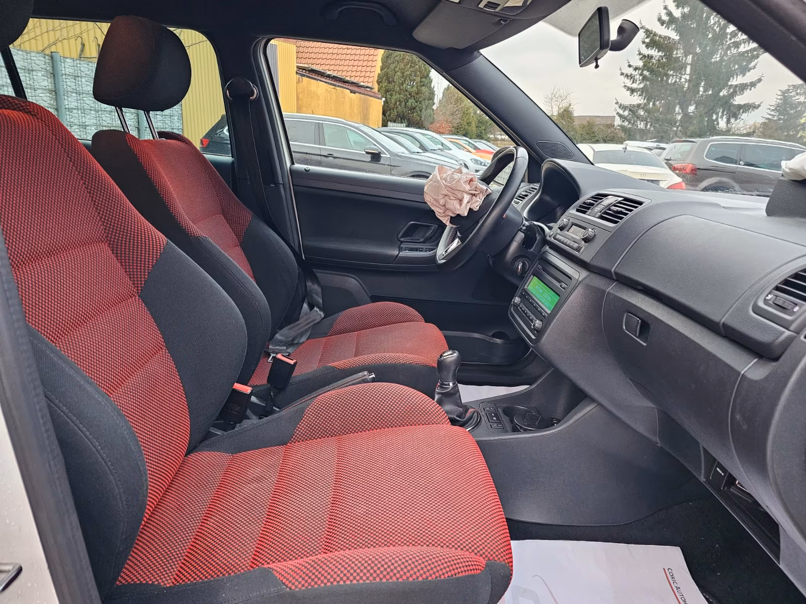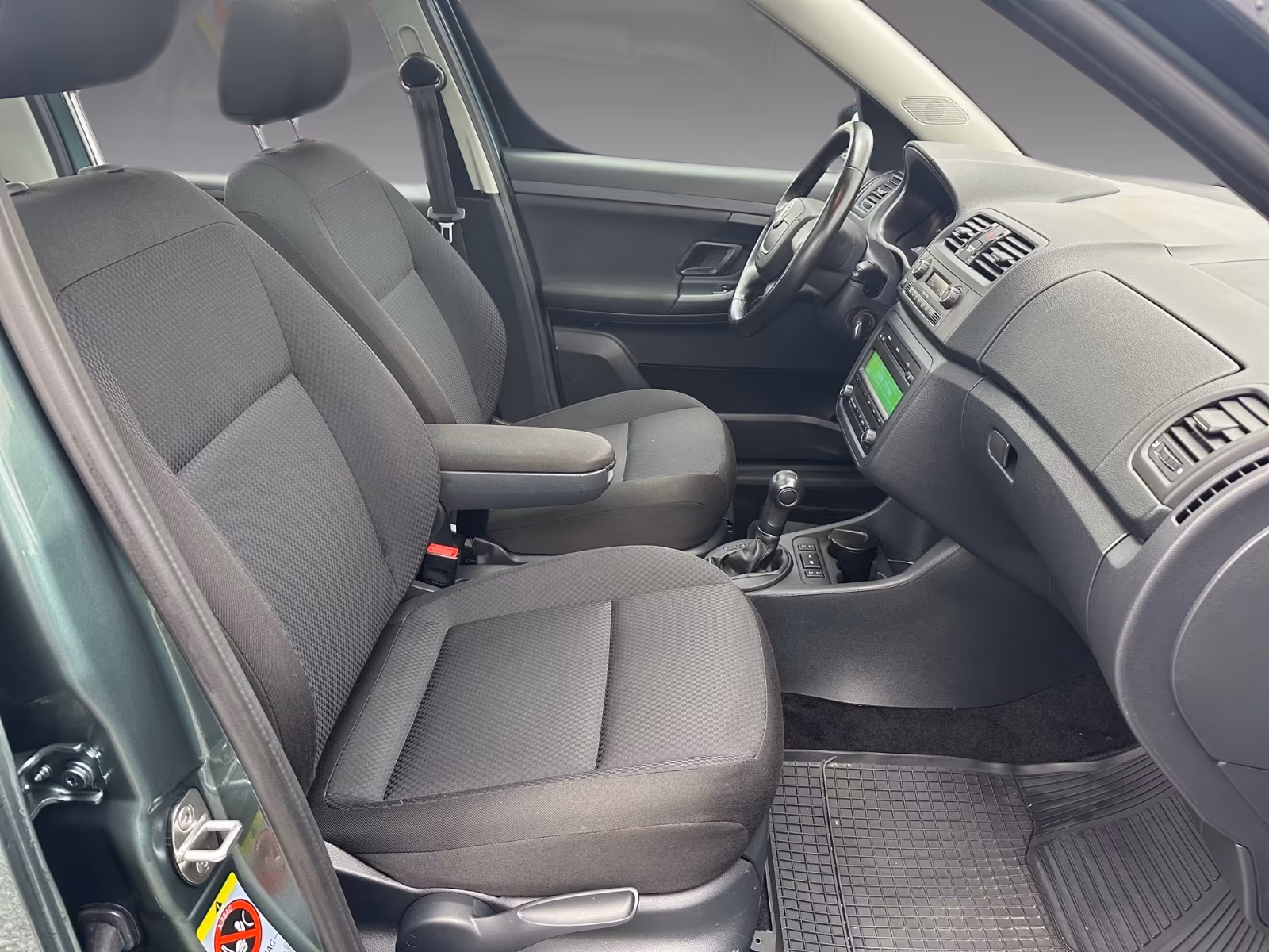 Vzor potahů je totožný se vzorem z jedničkové Fabie po faceliftu v úrovni Classic (tam se jmenoval Fresh). Byl v nabídce s plasty Onyx/Onyx nebo Onyx/Stříbrnošedá, ale do pracovního auta si světlou variantu asi nikdo nevybral.
