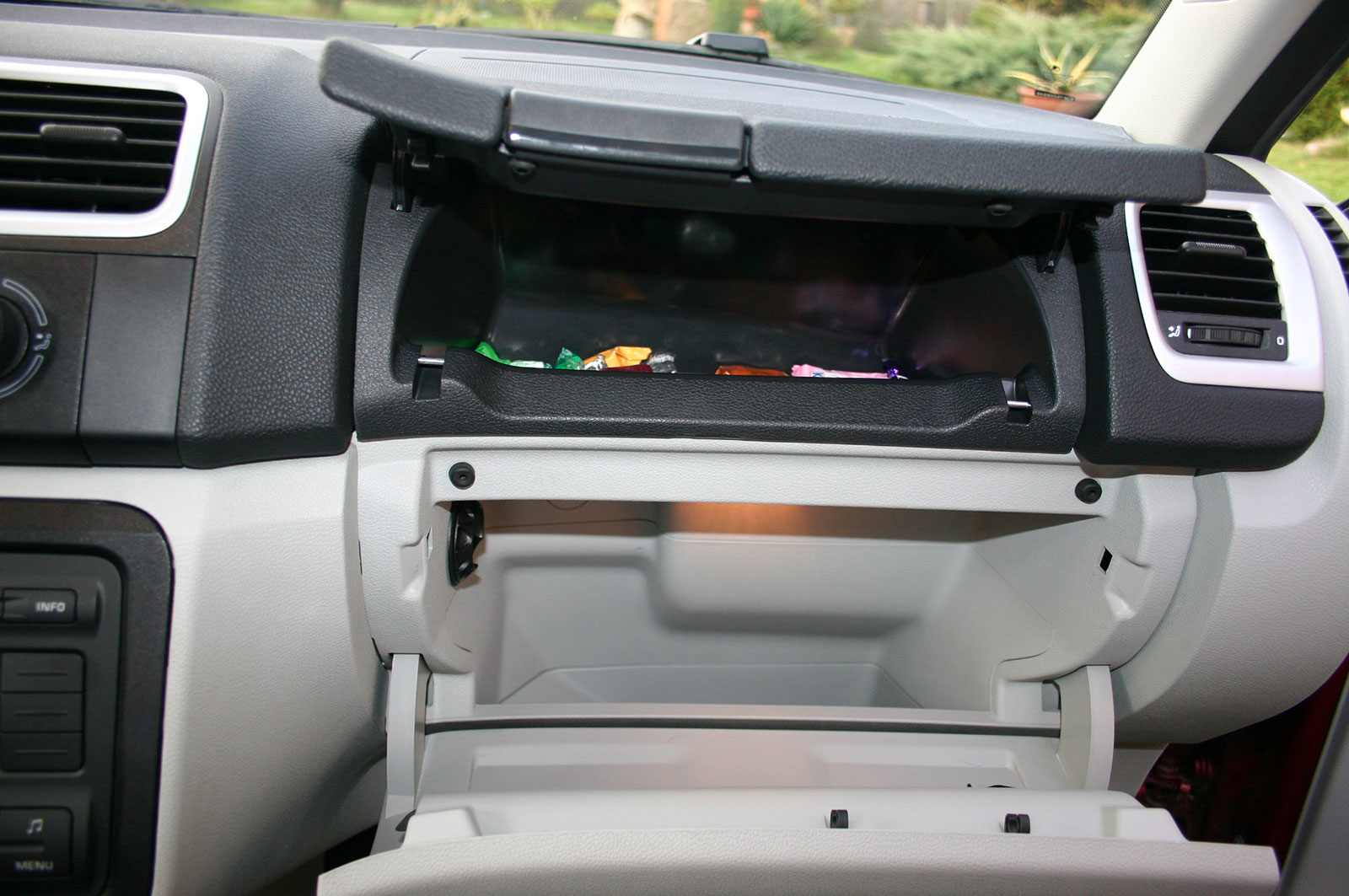 Od prostředního stupně Style byly obě schránky vybavené víky. Horní v tomto případě nemá držák na tužku a kvůli masivnímu víku je malá. Spodní má osvětlení a v případě klimatizace také uzavíratelný výdech. Spodní víko má držáčky propisky a kartiček.