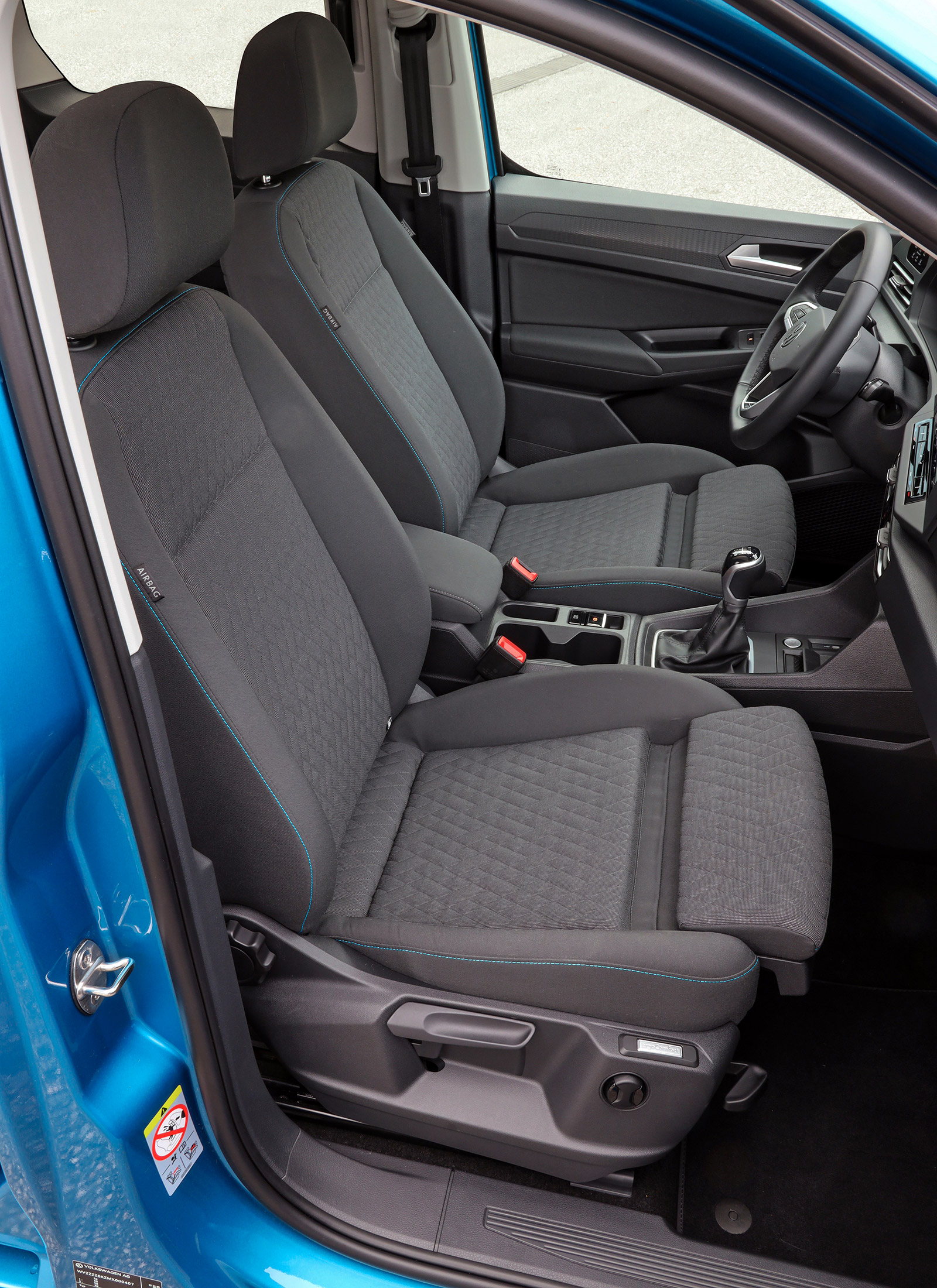 Víte, že potahy sedadel Triangle výbavového stupně Life existují i ve variantě s obšitím modrou nití na předních i zadních sedadlech? Dle mého pátrání se jedná o dost velkou vzácnost určenou pouze pro akční výbavu Move z let 2020 a 2021 pro všechny barvy karoserie.