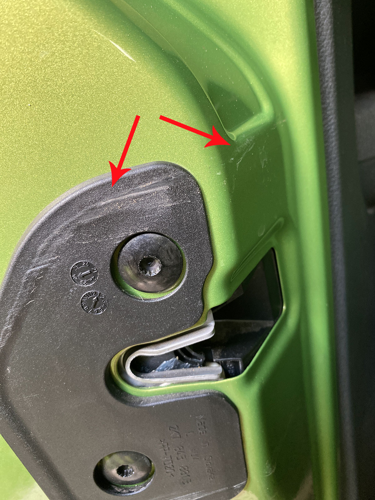 Mají tam ty náplasti být nebo ne? Kdyby na ně při zavřených dveřích dosedal nějaký protikus, tak bych jejich význam chápal jako ochranu laku, ale takhle působí dojmem, že je někdo zapomněl sundat. Nekrytá díra by mohla sloužit pro odpaření vlhkosti z útrob plechu, takže fakt nevím. Máte je tam taky?