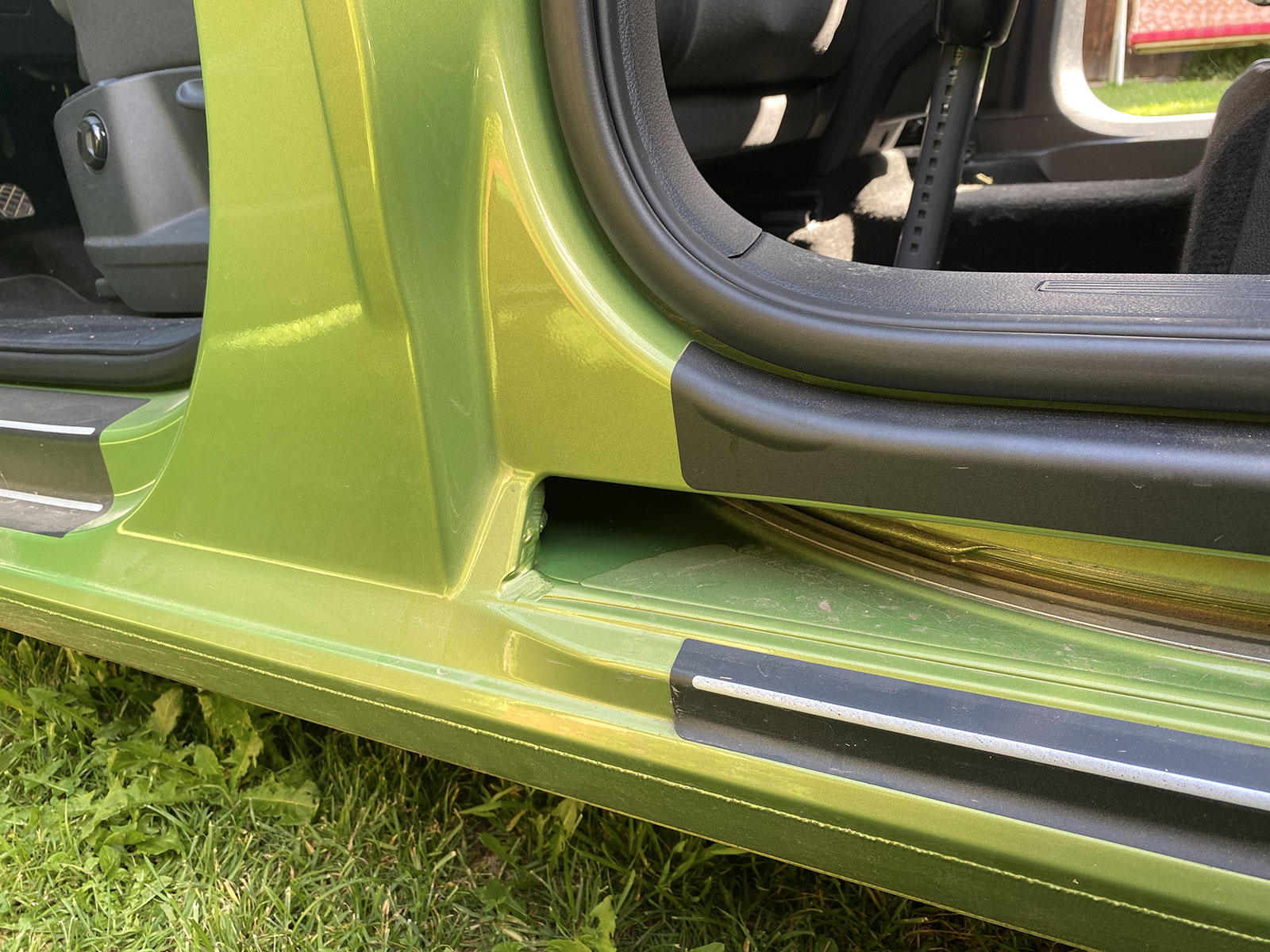 Zvuk zabouchnutí řidičových a spolujezdcových dveří se neshoduje. Z jiného auta tento neduh neznám, natož z nového. Dveře u spolujezdce se zavírají citelně kultivovaněji, zatímco u řidiče se ozve takové to tradiční prásknutí známé z levných modelů Škody, třeba z Fabie či Roomstera.