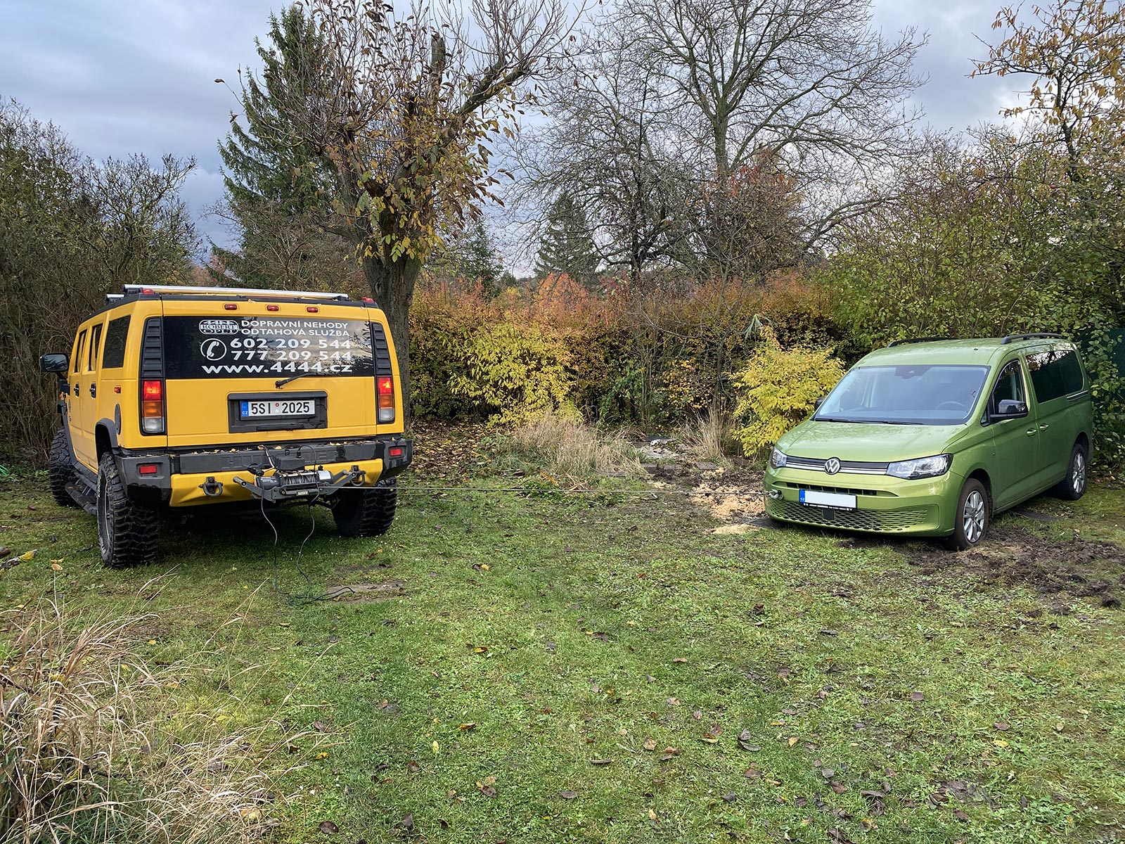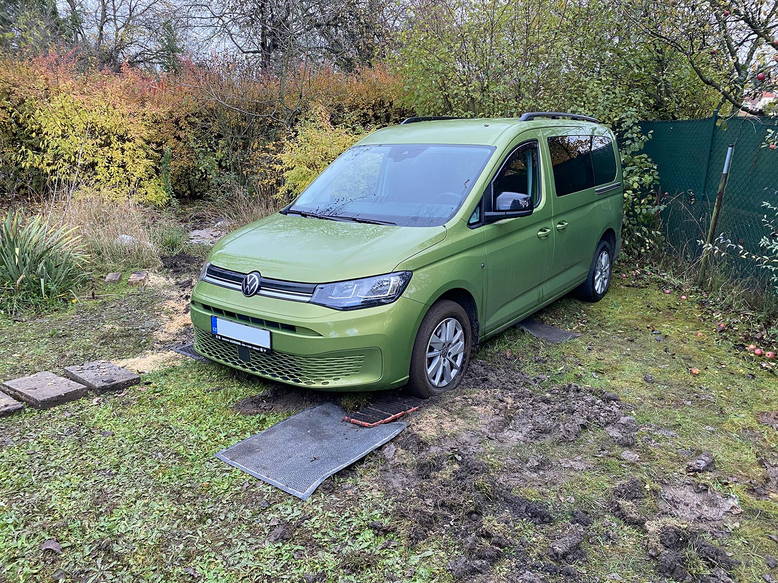 Už jste někdy zapadli začátkem listopadu v Praze? Že ne? Nedivím se. Člověk musí být opravdové pako, aby toho docílil. To bylo tak. V pátek jsem za suchého počasí zaparkoval v dolní části zahrady na trávě. Za zadkem plot a čumák do kopce. Celá neděle propršela a mě nenapadlo, že by se třeba ta tráva s mechem mohly podmáčet. Caddy už bez pomoci nevyjel. Na jakékoliv sypání písku, peletek, štěrku, podkládání koberců či betonových dlaždic nereagoval, všechno bylo k prdu. Zahrabat se v blátě vyjde daleko hůř, než zapadnout ve sněhu. Pneumatiky se po prvním protočení stanou dokonale slizkými a snahy o vyhrabání mají za následek jen noření přídě hlouběji a hlouběji, až si nakonec auto sedne na břicho.
