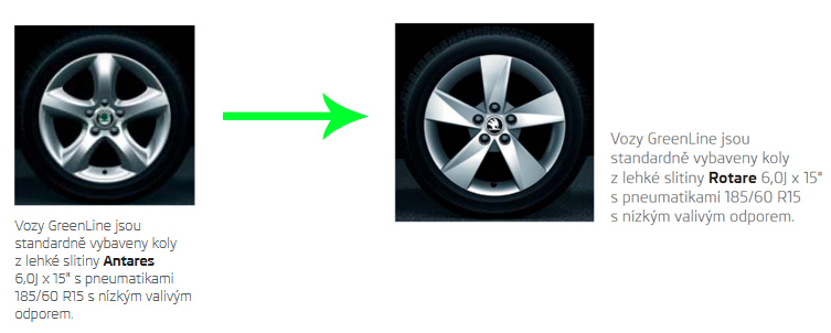 Pro modelový rok 2014 dochází u GreenLine ke změně kol: místo patnáctek Antares nastupuje design Rotare o stejném průměru. Týká se Roomstera i Fabie.