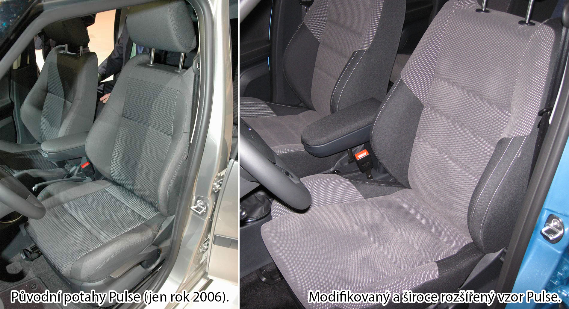 Potahová Látka Pulse sportovních předních sedadel vypadala původně jinak. Krátce po zahájení výroby (ještě v roce 2006) byl vzor i materiál nahrazen jiným, již běžně známým.