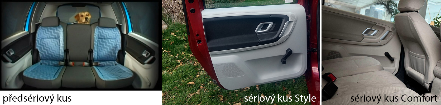 „Gumicuky“ zadních sedadel byly v předsérii červené. Mimochodem je zvláštní, že mnoho lidí (včetně těch, co si hrají na automobilové novináře), dodnes nechápe jejich pravý význam a stěžují si, že jsou krátké a tím pádem k ničemu. Jsou určené k bezpečnému fixování sedadel k přední hlavové opěrce při jejich překlopení dopředu. Nikoliv ke kotvení nákladu.